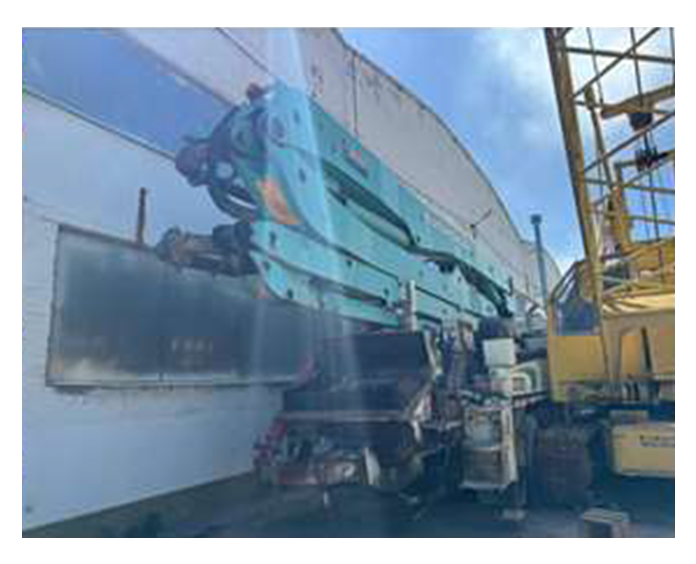 Автобетононасос EVERDIGM 37ZX на шасси IVECO TRAKKER AD380T38H находится в удовлетворительном состоянии, повышенный люфт в рулевых пальцах, течь масла из раздаточной коробки, лопнул коренной лист рессоры. Произошло замыкание CAN-шина (не заводится). Течь масла из цилиндров шибера, замена всех РВД, ремонт водяного насоса, ремонт двух задних аутригеров. Замена двух поршней бетононасоса, замена всех уплотнений бетоновода. Замена АКБ, замена аккумуляторов в пульте управления, а также зарядной станции.