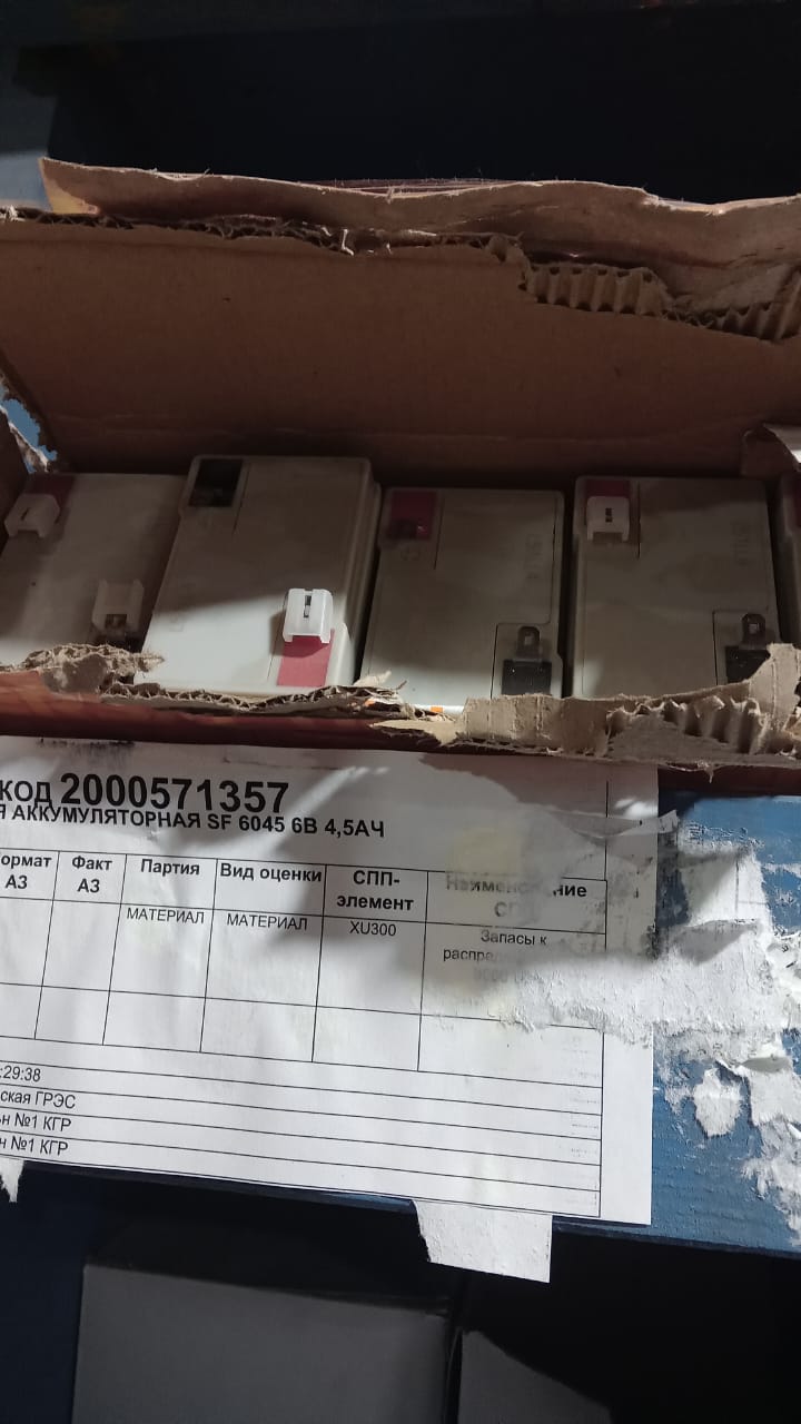 АО "Кемеровская Генерация" Кемеровская ГРЭС реализует БАТАРЕЯ АККУМУЛЯТОРНАЯ SF 6045 6В 4,5АЧ, МАТЕРИАЛ. За подробной информацией обращайтесь по телефону +7 (384) 245-40-00 д.33-2-88 или по почте LutskiySM@sibgenco.ru