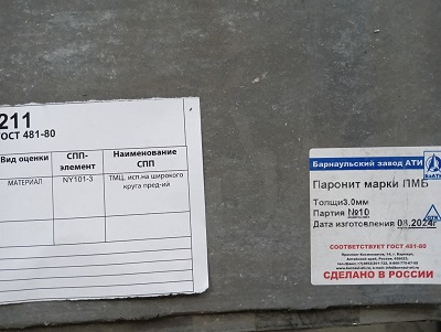 ПАРОНИТ ПМБ 3ММ 1,0*1,5 2000132211-Y111 купить по цене 104.42 руб. рублей | ЭТП Актив | ЭТП Актив