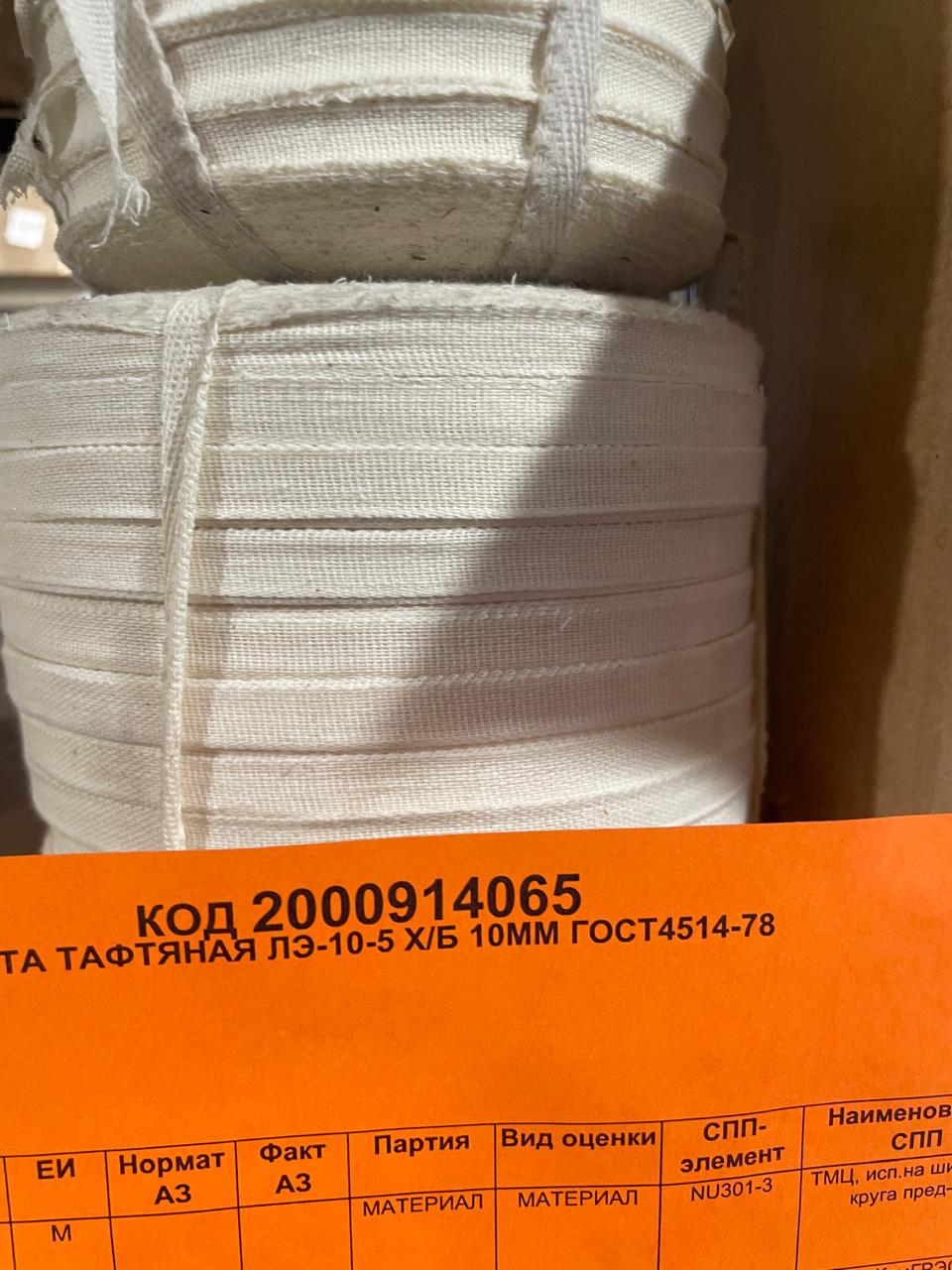 ЛЕНТА ТАФТЯНАЯ ЛЭ-10-5 Х/Б 10ММ ГОСТ4514 2000914065-U311 купить по цене 1.24 руб. рублей | ЭТП Актив | ЭТП Актив