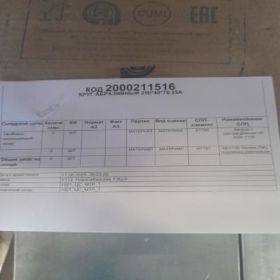 КРУГ АБРАЗИВНЫЙ 250*40*76 25А 2000211516-Y112 купить по цене 1 142.35 руб. рублей | ЭТП Актив | ЭТП Актив