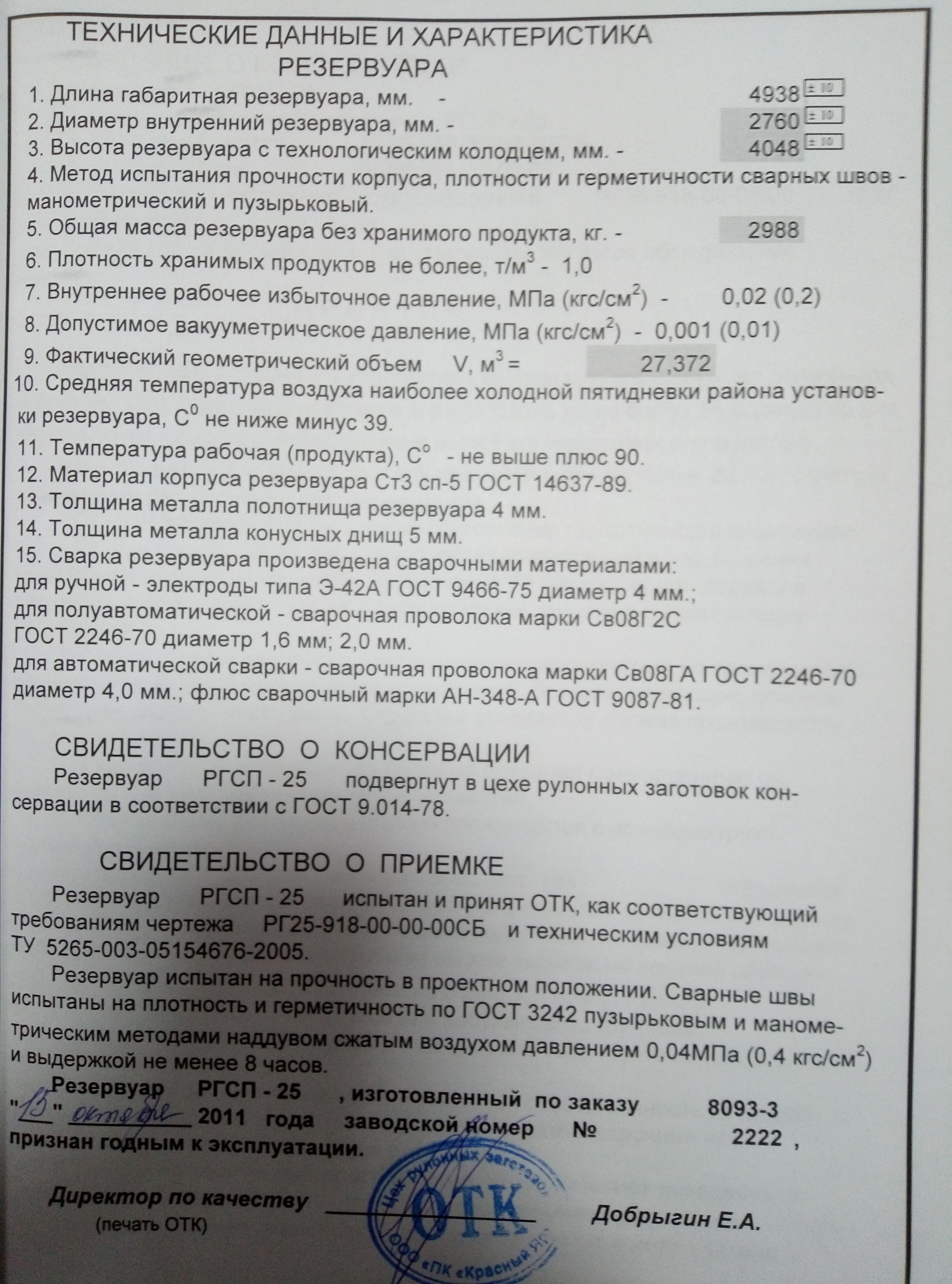 РЕЗЕРВУАР РГСП-25М3 СТ3СП5 2ЛИНИИ ВЫДАЧИ 2000155655-U311 купить по цене 73 379.17 руб. рублей | ЭТП Актив | ЭТП Актив
