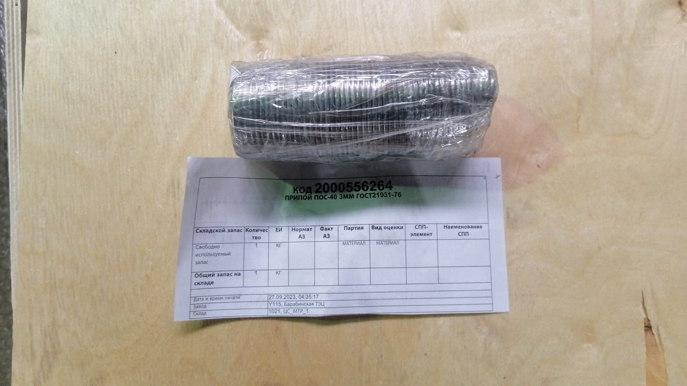 АО «СГК-Новосибирск» ОП Барабинская ТЭЦ реализует ПРИПОЙ ПОС-40 3ММ ГОСТ21931-76, МАТЕРИАЛ. За подробной информацией обращайтесь по телефону 8 (383) 289-02-03, вн.74203 , моб.8-923-108-12-29. Кухта Наталья 8(923)227-44-27 или по почте BatokKV@sibgenco.ru