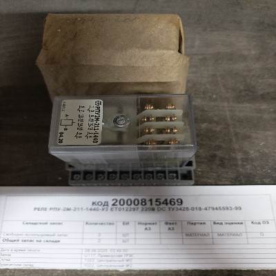 РЕЛЕ РПУ-2М-211-1440-У3 220В DC ET012297 2000815469-U117 купить по цене 1 025.16 руб. рублей | ЭТП Актив | ЭТП Актив