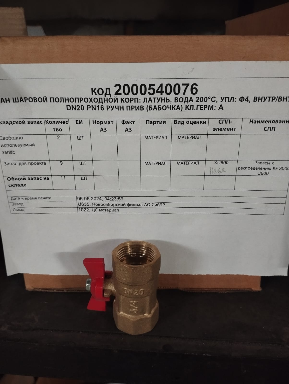 КРАН ЛЦ ПП ВОДА 200° ВВ 20/16 Б A 2000540076-U635 купить по цене 177.52 руб. рублей | ЭТП Актив | ЭТП Актив