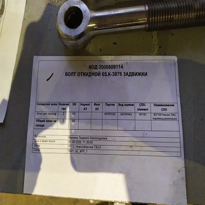 БОЛТ ОТКИДНОЙ 65.К-3876 ЗАДВИЖКИ 2000609114-Y112 купить по цене 1 041.67 руб. рублей | ЭТП Актив | ЭТП Актив