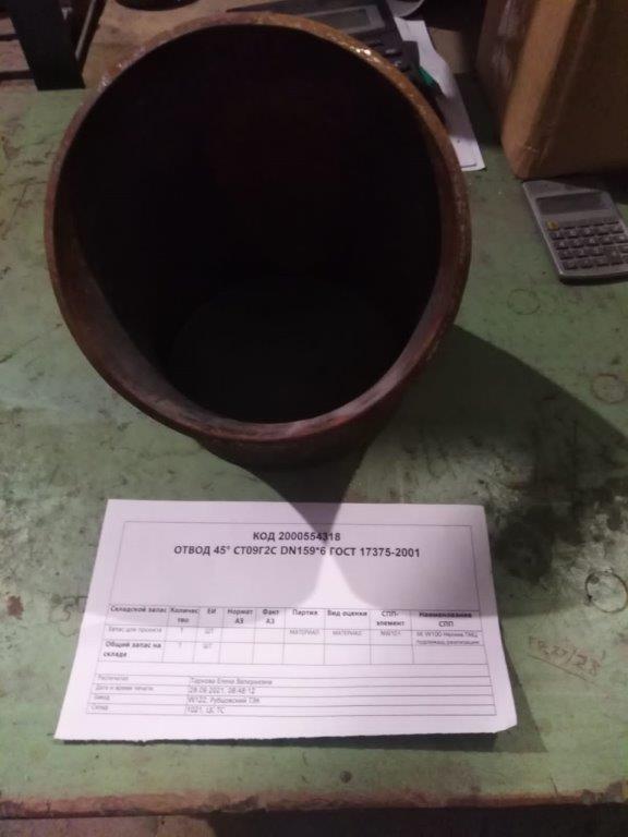 ОТВОД 45° 09Г2С DN159*6 ГОСТ17375-01 2000554318-W122 купить по цене 98.42 руб. рублей | ЭТП Актив | ЭТП Актив