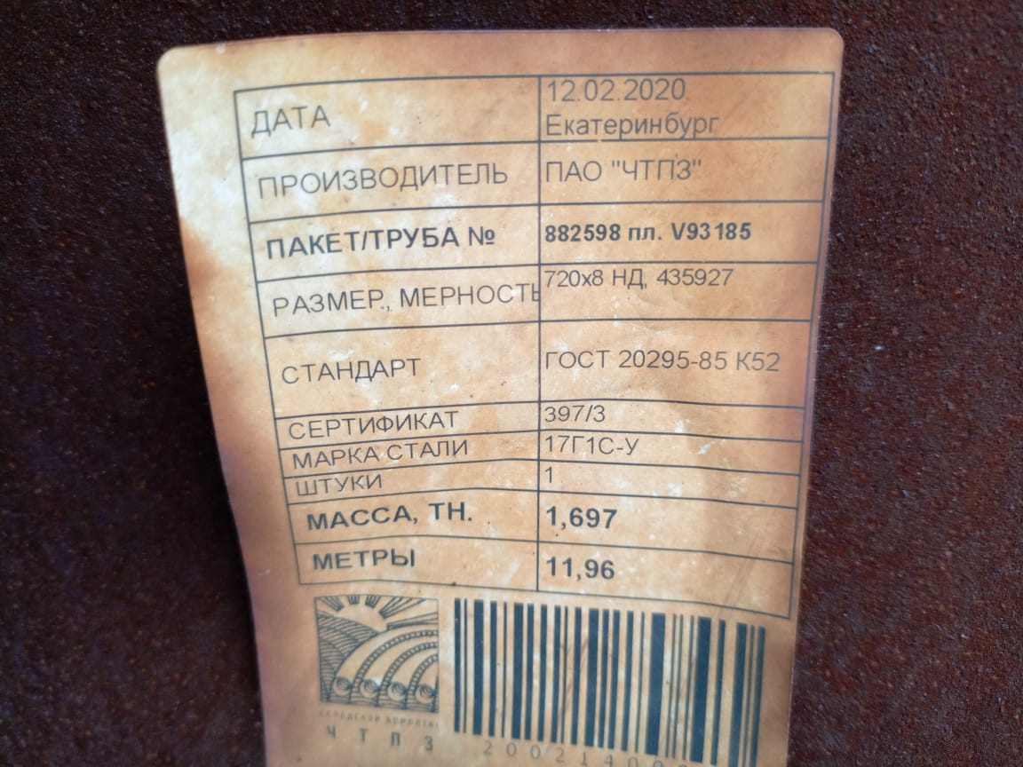 ТРУБА Э/С СТ3 720*8 ГОСТ10705-80 2000380095-V114