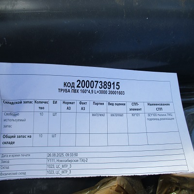 АО «СГК-Новосибирск» ОП Новосибирская ТЭЦ-2 реализует ТРУБА ПВХ 160*4,9 L=3000 20001603, МАТЕРИАЛ. За подробной информацией обращайтесь по телефону 8 (383) 289-02-03, вн.74203 , моб.8-923-108-12-29. Кухта Наталья 8(923)227-44-27 или по почте BatokKV@sibgenco.ru
